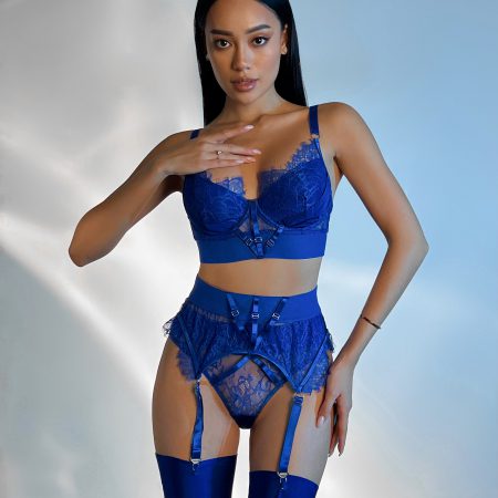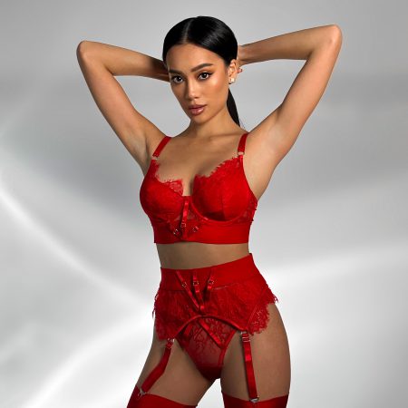 В комплект входить: Бюстгальтер, Трусики, Пояс для панчох, Гартери